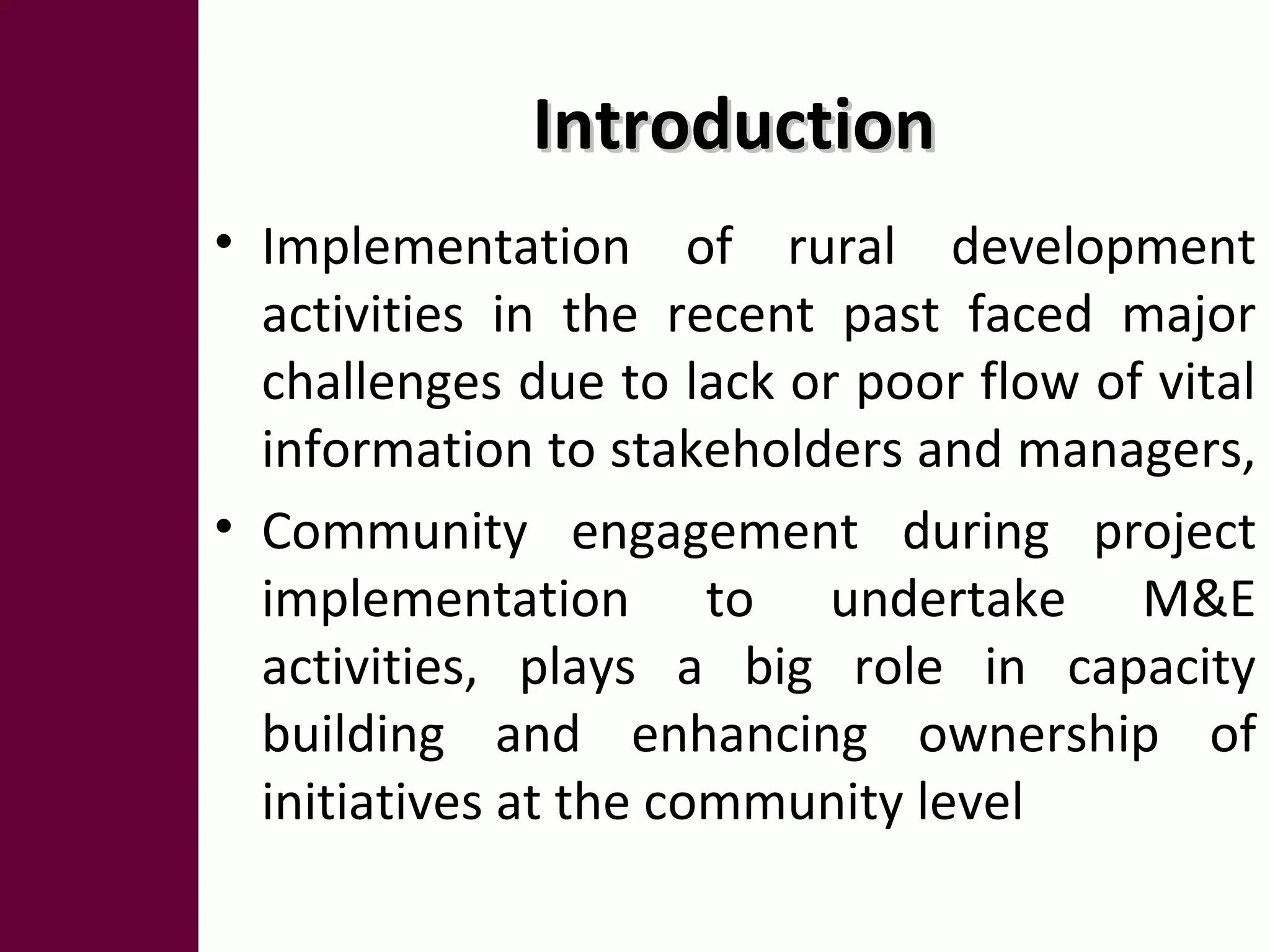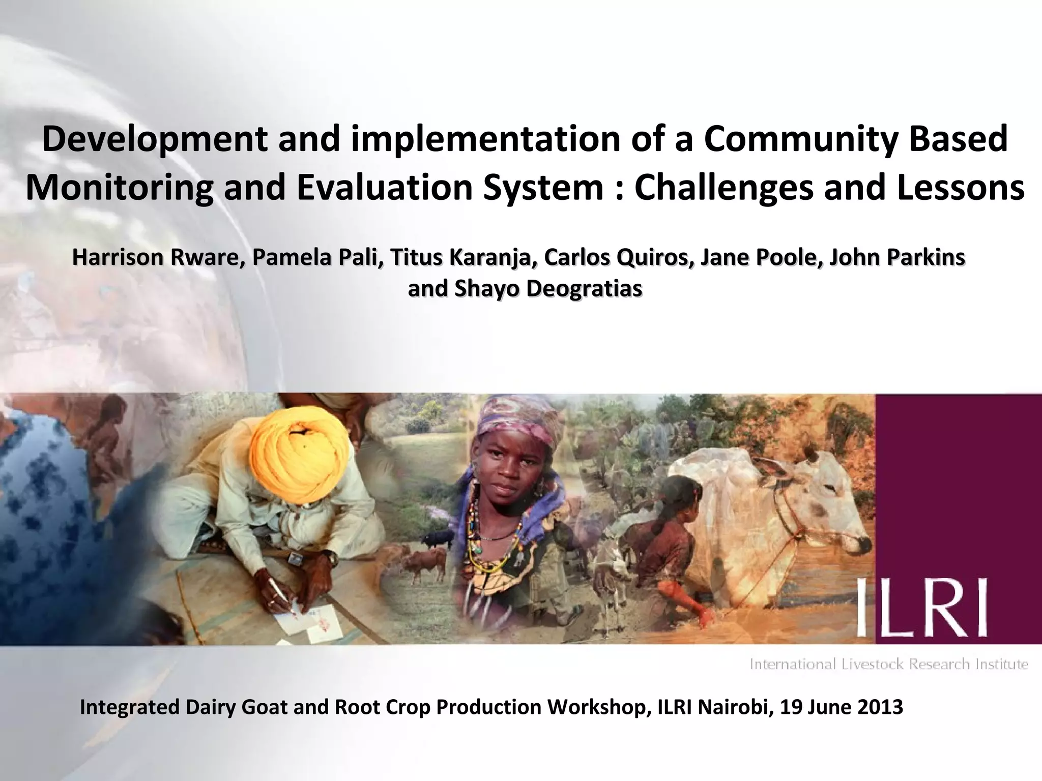 The document discusses the development and implementation of a community-based monitoring and evaluation (CBME) system aimed at enhancing rural development and capacity building for farmers. It outlines challenges such as data collection issues and financial commitments, while emphasizing the importance of community engagement and participatory approaches for sustainability. Lessons learned include the significance of data reliability, process ownership, and community involvement in fostering skills related to record keeping and enterprise management.