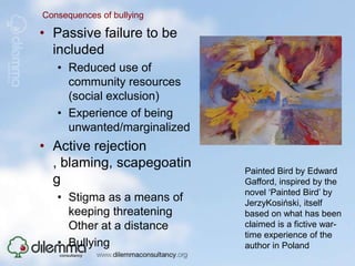 The document discusses various aspects of Asperger syndrome, including its association with a lack of empathy and challenges in social functioning. It highlights findings from a Sheffield survey on bullying, emotional issues, and the high prevalence of mental health concerns among individuals with Asperger syndrome. The content also explores the implications of these social difficulties, including dependence on caregivers, bullying experiences, and the potential for individuals to struggle with identity and interpersonal relationships.