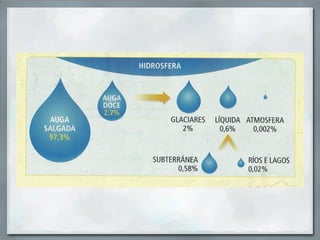 A Hidrosfera é o conxunto de augas que forman