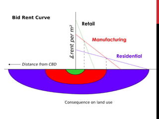 This document discusses the dynamics of rural settlement and human geography, highlighting key concepts like urbanization, counterurbanization, and various settlement patterns. It outlines changes in rural areas due to factors like migration, technological advancements, and urban sprawl, as well as the process of gentrification in urban settings. Additionally, it examines models of urban land use and the evolution of cities over time.
