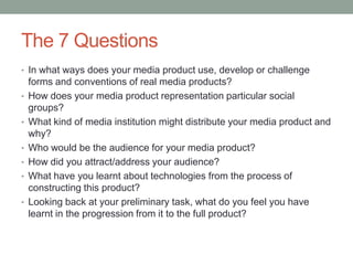 Natalie Holt created a rock music magazine to represent various conventions of the genre. She used inconsistent color schemes, bold fonts, and different fonts throughout to develop the magazine's style. Holt included images of artists in dark clothing and poses to represent the attitude of rock music. The target audience for the magazine is 16-25 year olds and Holt included free posters and quotes from articles to attract this demographic. Through making the magazine, Holt learned basic photo editing in Photoshop and how to lay out pages in Publisher using various tools and fonts. Overall, Holt felt she improved at applying research on genre conventions to create a cohesive magazine design.