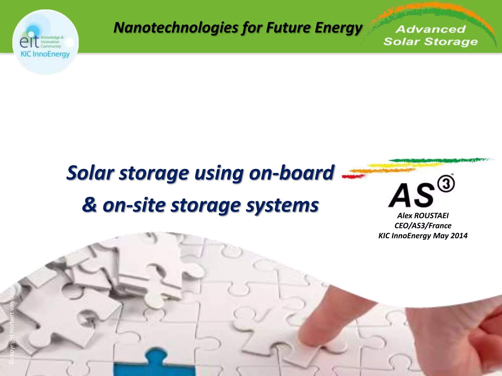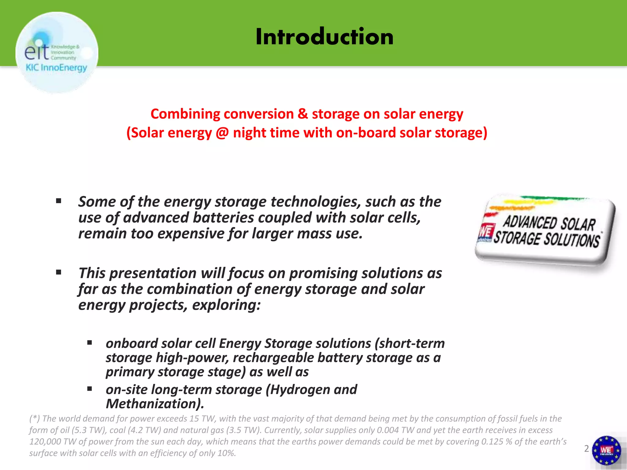 The document discusses the challenges and solutions in integrating energy storage with solar energy, highlighting the cost barriers of current technologies and the potential of advanced nanocell solar storage systems. It presents the advantages of flexible solar cells and lithium nano-titanate batteries that offer high efficiency, low operational costs, and substantial storage life cycles. Additionally, it outlines a business model with a phased action plan for production, targeting a significant market share in the solar storage system industry.