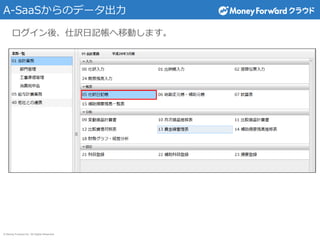 Inc. All Rights Reserved ログイン後、仕訳日記帳へ移動します。 A-SaaSからのデータ出力