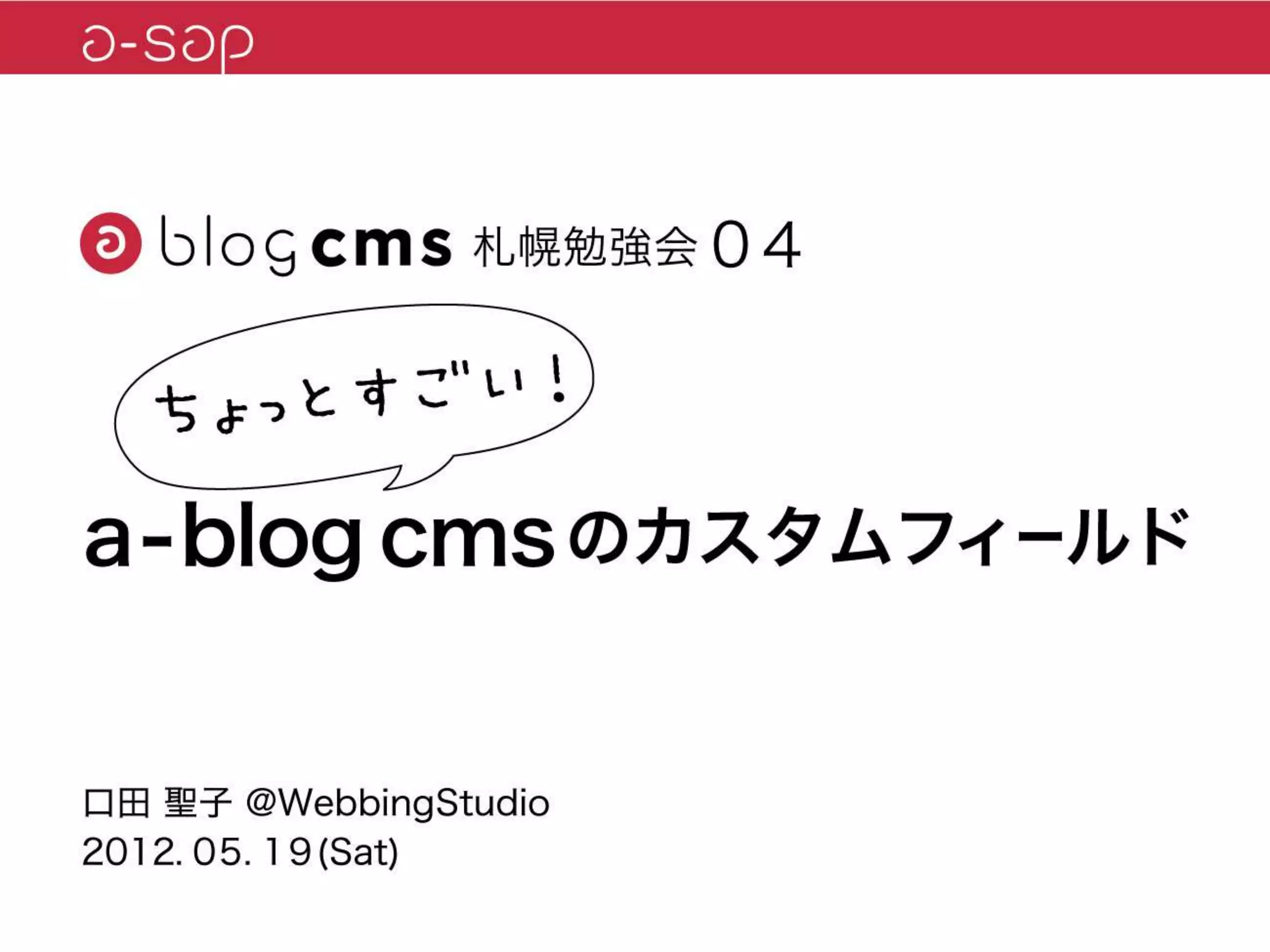 a-sap(a-blog cms札幌勉強会)第4回の解説プレゼンテーションです。a-blog cmsのカスタムフィールドの特徴、使いどころ、注意点について解説しています。