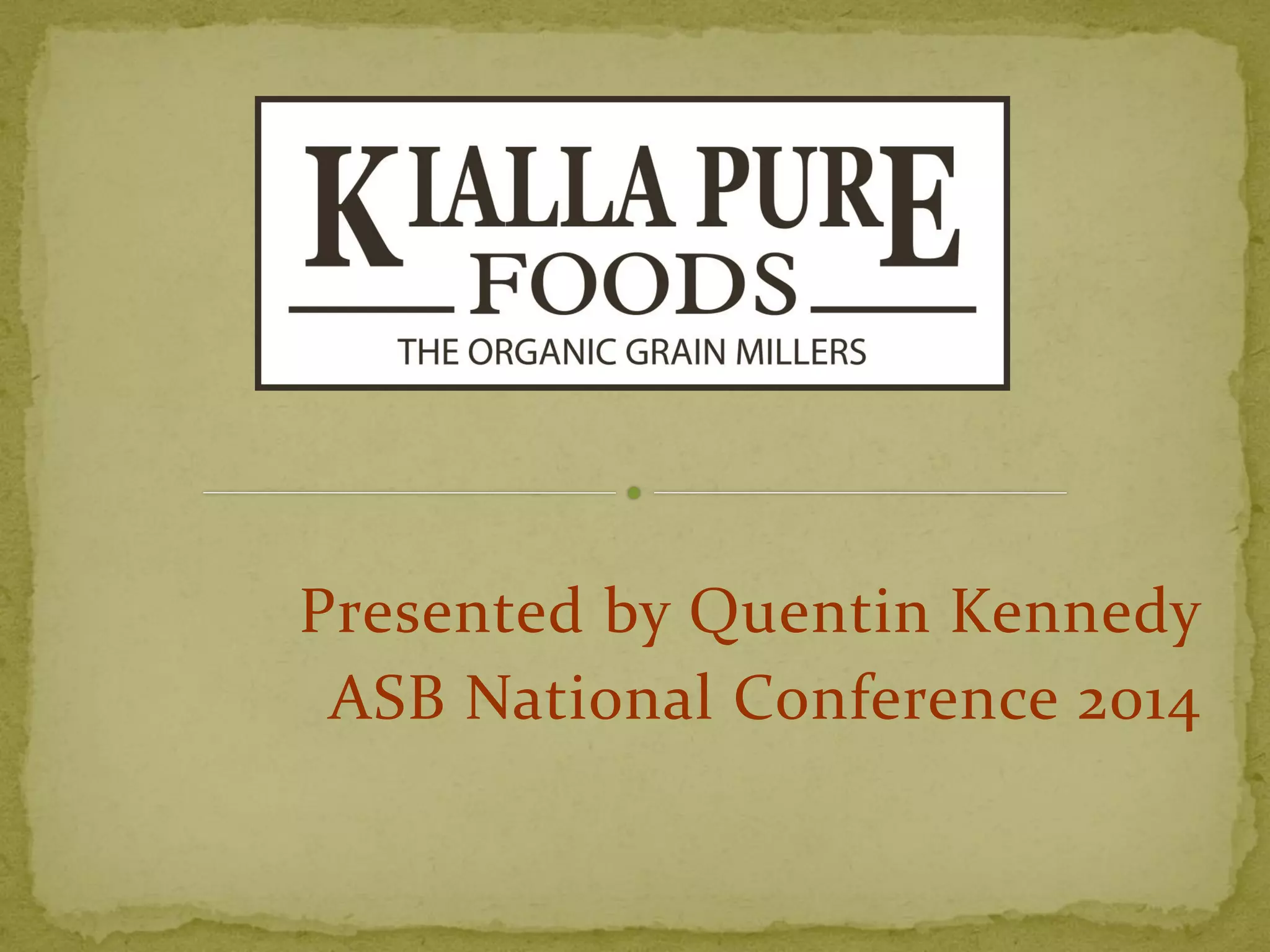 Quentin Kennedy presented on trends in organic food consumption and bakery trends. Organic farming in Australia is forecast to grow 11.2% annually and reach $655 million by 2014. Consumption of organic condiments, snack foods, and breads and grains grew significantly in the US from 2012 to 2013. Kialla is one of Australia's largest dedicated organic milling companies, operating since the late 1980s. It supplies a wide range of organic grains and flours to food manufacturers, bakers, retailers and wholesalers.