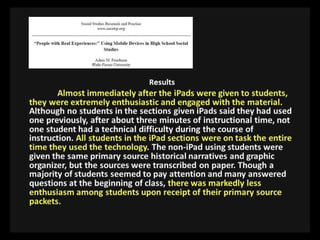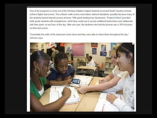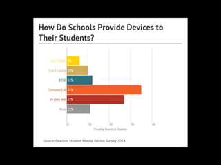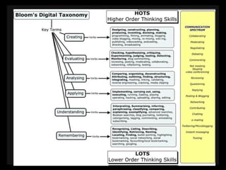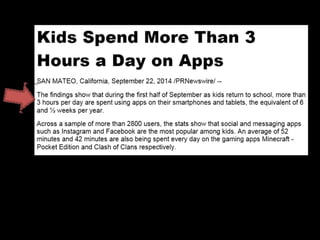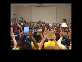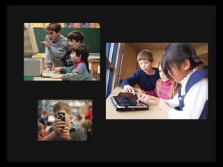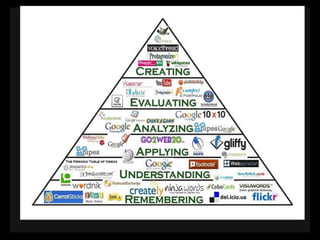 This document provides resources for teaching technology to both adults and children, including websites for creating presentations, doing research, making videos and mind maps, taking quizzes, and safely communicating with students. It emphasizes the importance of teaching appropriate and ethical technology use since parents and students may not learn about it otherwise. Resources mentioned include Facebook, SlideShare, KQED MindShift, iPads, Evernote, SurveyMonkey, and online collaboration tools.