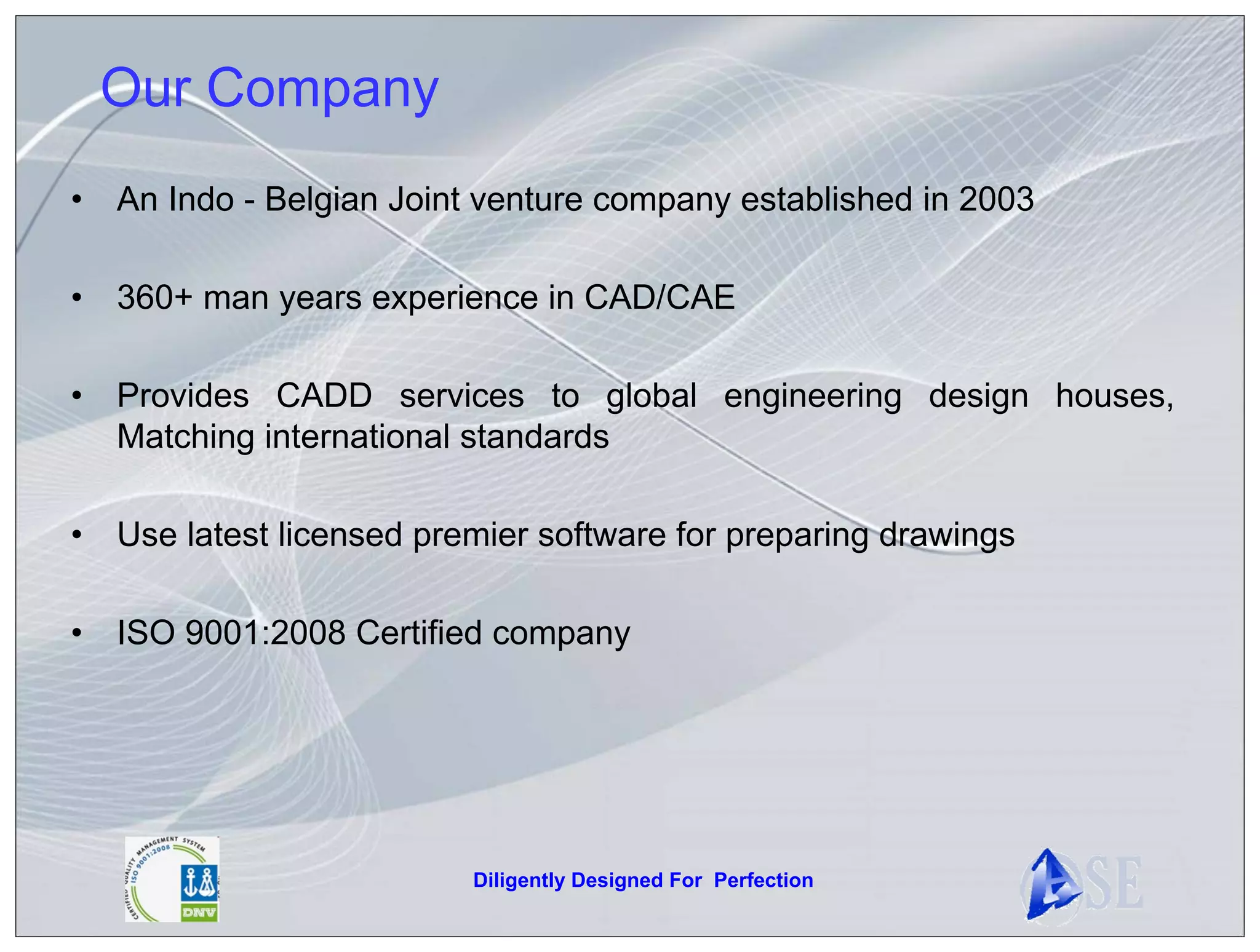Ase Structure Design Private Limited, an Indo-Belgian joint venture established in 2003 in Chennai, India, specializes in CAD/CAE services for global engineering design, with over 360 years of combined experience. The company offers design services across various sectors, including telecom infrastructure, GIS, MEP, and architecture, utilizing premier licensed software and adhering to ISO 9001:2008 standards. With expertise in structured cabling and a strong focus on project information management, the company serves clients in multiple countries while ensuring data confidentiality and high security.