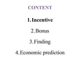 Management should provide incentives like bonuses and holidays to motivate employees. Leaders should also use positive language when speaking to employees. Companies need to regularly update their products and focus on quality and competition to aid marketing, which is important for business success. Management style affects these areas so understanding marketing techniques can help businesses.