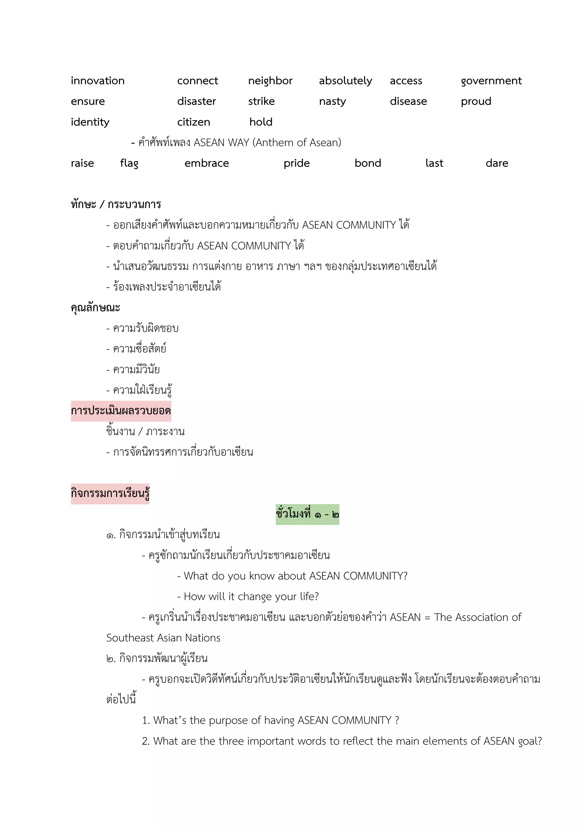 - ออกเสียงคําศัพทและบอกความหมายเกี่ยวกับ ASEAN COMMUNITY ได