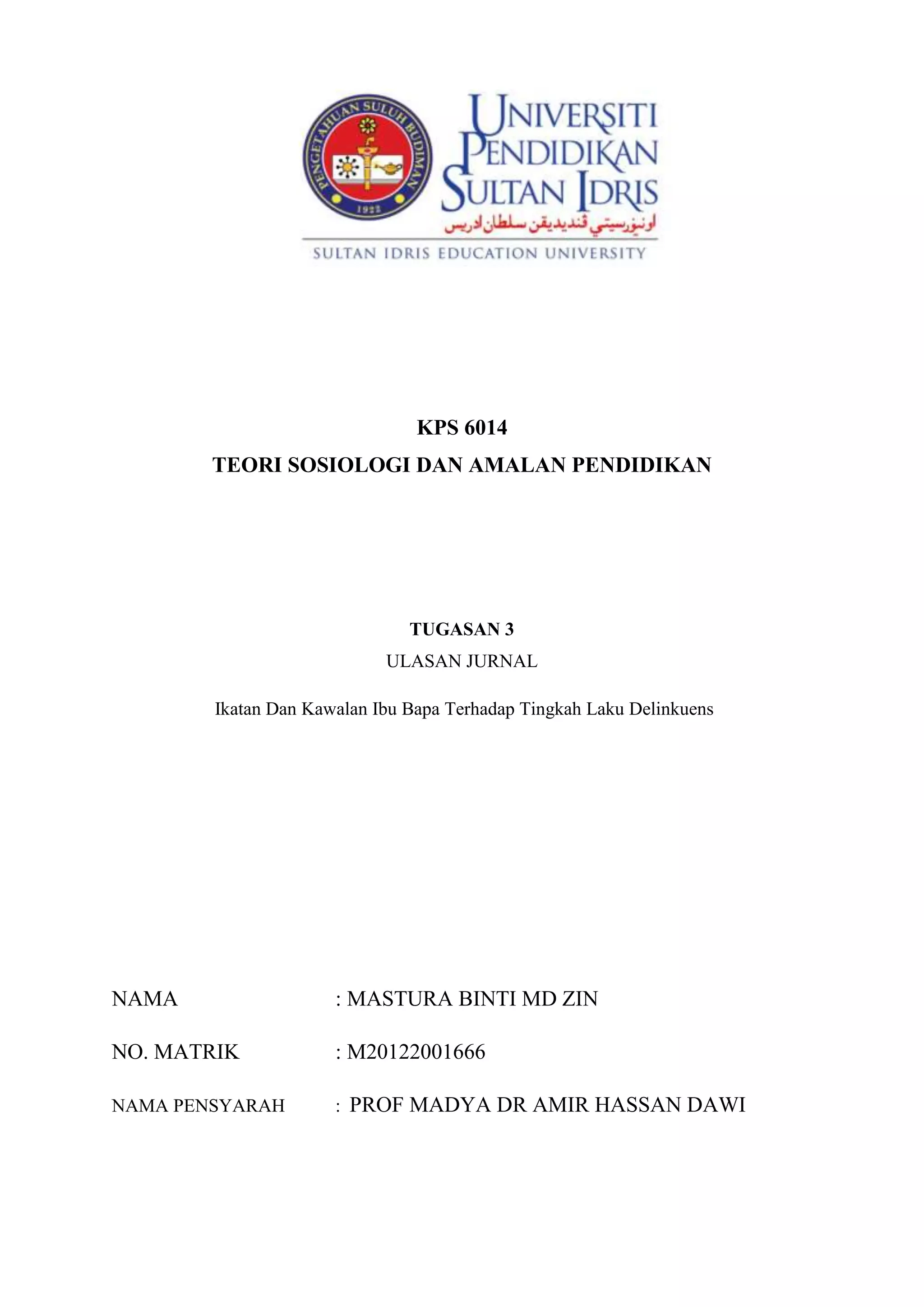 1. Kajian ini meneliti hubungan antara ikatan dan kawalan ibu bapa dengan tingkah laku delinkuens remaja