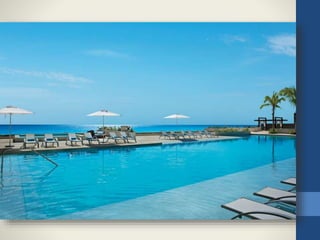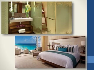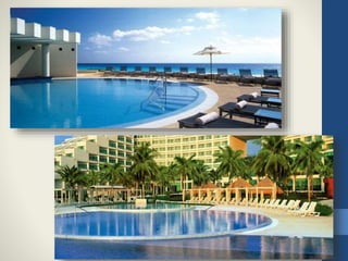 This document provides information on two all-inclusive resort options in Cancun, Mexico - Secrets The Vine and Live Aqua. Secrets The Vine is an adult-only 5-star resort with 495 rooms, three pools, a spa, and nine restaurants. Live Aqua is a 4.5-star adult-only resort with modern decor, seven pools, and six restaurants. Quotes for a one-week stay are provided, with Deluxe Ocean View rooms costing $3,167 at Secrets The Vine and $3,031 at Live Aqua.