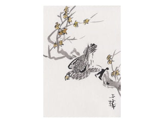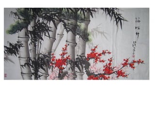 1. An ink painting from the 14th century by Wang Mian depicting plum blossoms, a symbol of renewal, with accompanying poems.