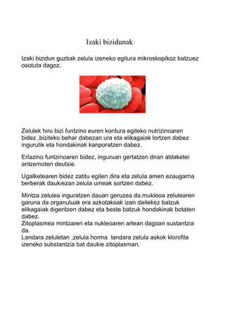 Izakibizidun guztiak zelula izeneko egitura mikroskopikoz batzuez