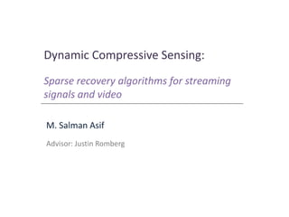 – M. Asif and Justin Romberg, ``Basis pursuit with sequential measurements and time-