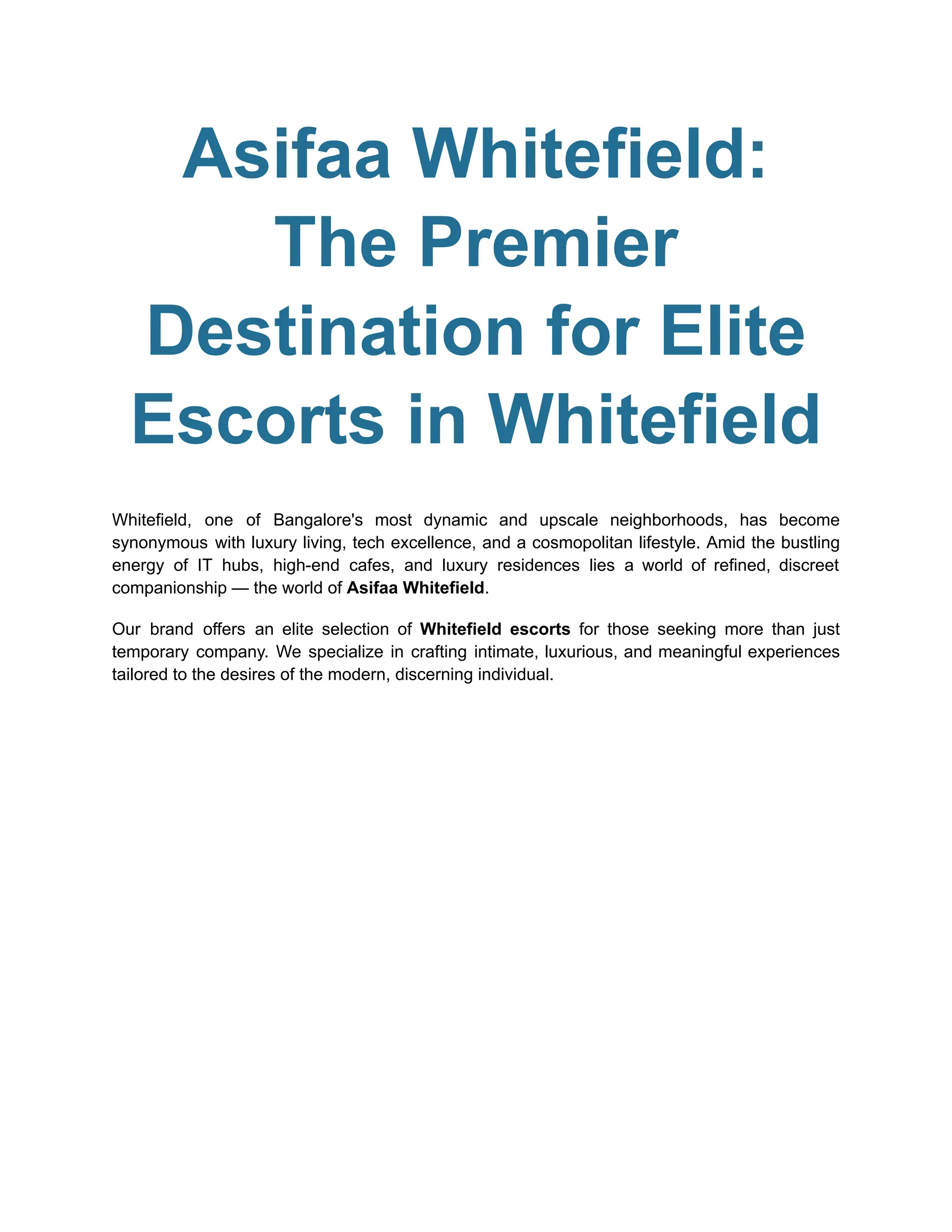 Whitefield Escorts | Asifaa - 919731333838 Experience elegance and charm with Whitefield escorts, offering elite companionship services in one of Bangalore’s most upscale neighborhoods. Whether you seek a partner for a social event, a romantic evening, or a relaxing getaway, our professional and discreet escorts in Whitefield ensure an unforgettable experience. Indulge in luxury, sophistication, and personalized service with our carefully selected companions.