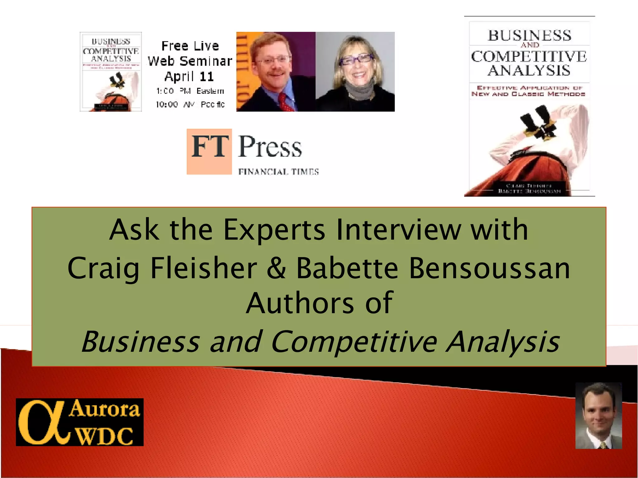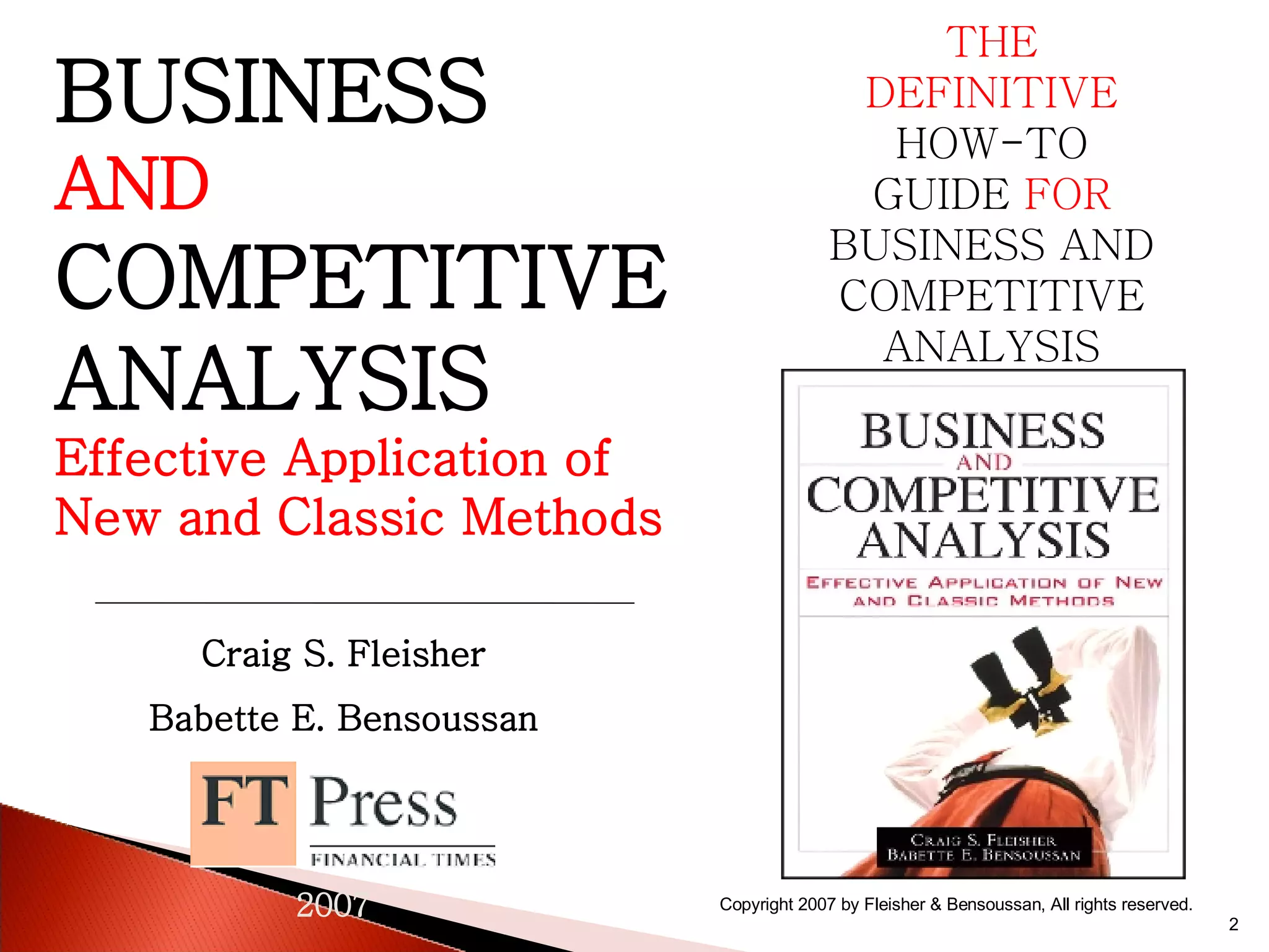 The document features an interview with Craig Fleisher and Babette Bensoussan, authors of 'Business and Competitive Analysis,' which provides a comprehensive guide on various analytical techniques, totaling 24 methods across different categories. It emphasizes the importance of proper analysis in decision-making and includes frameworks such as competitive positioning and financial analysis. The book builds upon their previous work while promoting practical application of analysis tools for improved business outcomes.