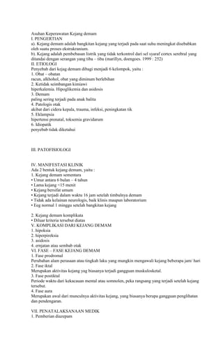 2. Etiologi kejang demam meliputi gangguan metabolik, infeksi, trauma otak, dan kelainan bawaan.