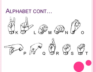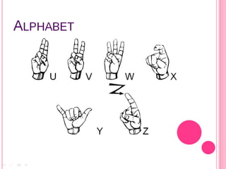 The document provides an overview of American Sign Language (ASL), Deaf culture, and the Deaf community. It discusses that ASL signs were learned, how the tight-knit Deaf community regularly gathers for events, and how students attended a class with a Deaf student who uses an interpreter. The Deaf culture believes Deaf people can do everything hearing people can and that the term "Hard-of-Hearing" is no longer used.