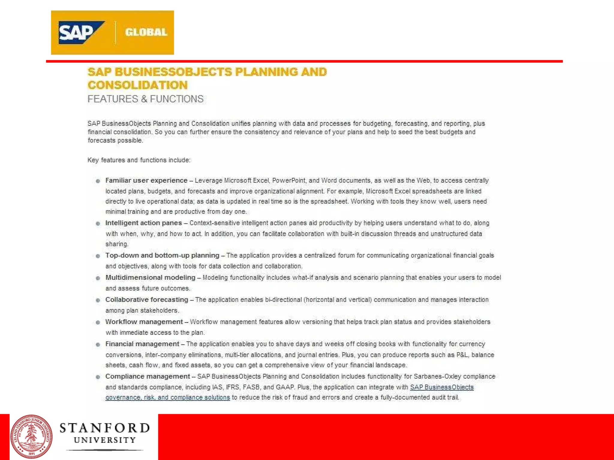 - Stanford uses Hyperion Planning for budget formulation, monitoring, reforecasting, and variance analysis across its $4B budget.