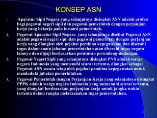 Dokumen ini membahas penataan Aparatur Sipil Negara (ASN) di daerah berdasarkan UU 5/2014 jo UU 23/2014, dengan penekanan pada manajemen ASN yang profesional dan bebas dari intervensi politik. Terdapat penjelasan mengenai sistem merit, kode etik, dan fungsi ASN sebagai pelaksana kebijakan publik. Selain itu, dokumen ini juga menjelaskan peran Komisi ASN (KASN) dalam pengawasan dan evaluasi pelaksanaan manajemen ASN.