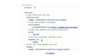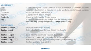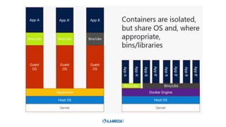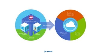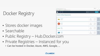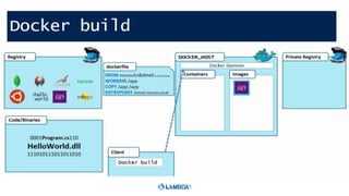 This document outlines a presentation about running ASP.NET Core applications on Docker containers. It introduces the speaker and their experience with .NET Core, ASP.NET Core, Azure, Docker, VSTS, and Azure Container Services. The agenda discusses the container workflow, deploying ASP.NET Core applications to Docker containers, and Azure Container Services. It includes demos of a Docker hello-world sample and running an ASP.NET Core app in a Docker container.