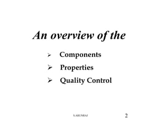 The document provides a comprehensive overview of asphalt rubber binder, including its components, properties, and quality control measures. It details the blend of asphalt cement, crumb rubber from reclaimed tires, and various additives necessary for producing the binder, along with specifications for different climate conditions. Additionally, it addresses the importance of testing and monitoring during production to ensure desired material properties are maintained.