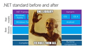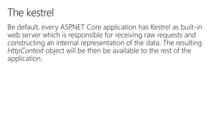 The document contains code snippets for a .NET user group, showcasing a simple 'Hello World' application in both .NET and ASP.NET Core. It outlines the structure of the ASP.NET Core application, including methods for handling requests and configuring services and middleware. Additionally, it provides links to GitHub and NuGet for further exploration of .NET core resources.