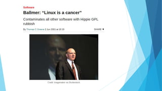 The document discusses the evolution of ASP.NET Core and its compatibility with Linux, highlighting Microsoft's shift towards open-source practices and the benefits of .NET Core compared to the older .NET Framework. Key features of .NET Core include a unified framework for web UI and APIs, modular architecture, and support for multiple platforms such as Windows, macOS, and Linux. Additionally, the document mentions advancements like Blazor and WebAssembly, along with various resources for developers.