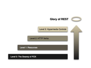 This document provides an overview of ASP.NET Web API including: - A model of REST maturity with 4 levels from plain XML to hypermedia controls. - The purpose of Web APIs as RESTful HTTP services compared to SOAP. - Mapping from WCF to the Web API model using controllers, actions, and routing instead of endpoints. - Features like content negotiation, model binding, and dependency injection supported in the Web API stack.