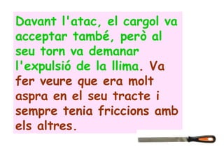Assemblea paragrsaf 2 1. Davant l'atac, el cargol va acceptar també, però al seu torn va demanar l'expulsió de la llima . Va fer veure que era molt aspra en el seu tracte i sempre tenia friccions amb els altres.