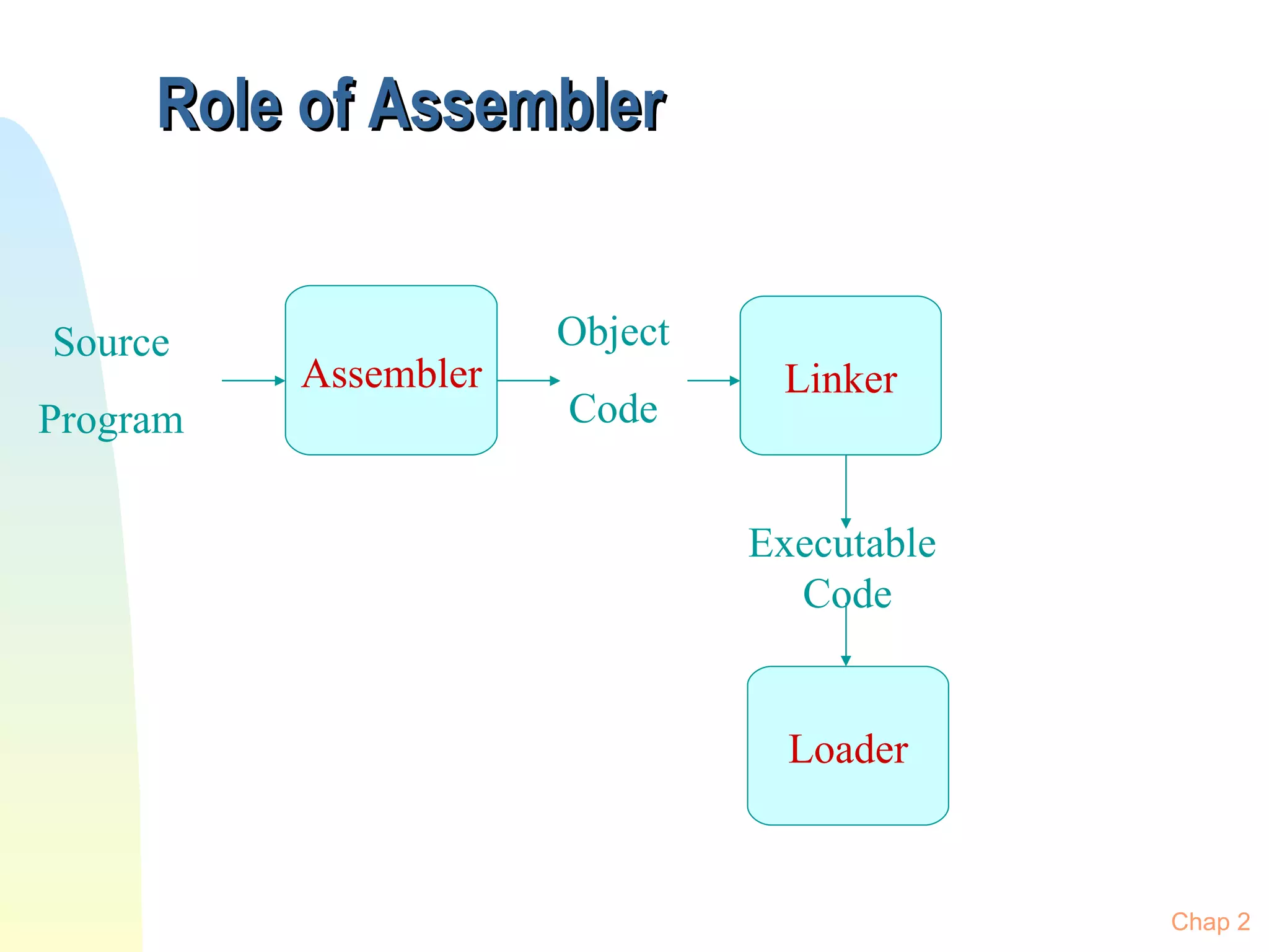 1) The basic functions of an assembler in translating mnemonic codes to machine language and assigning addresses to symbols.