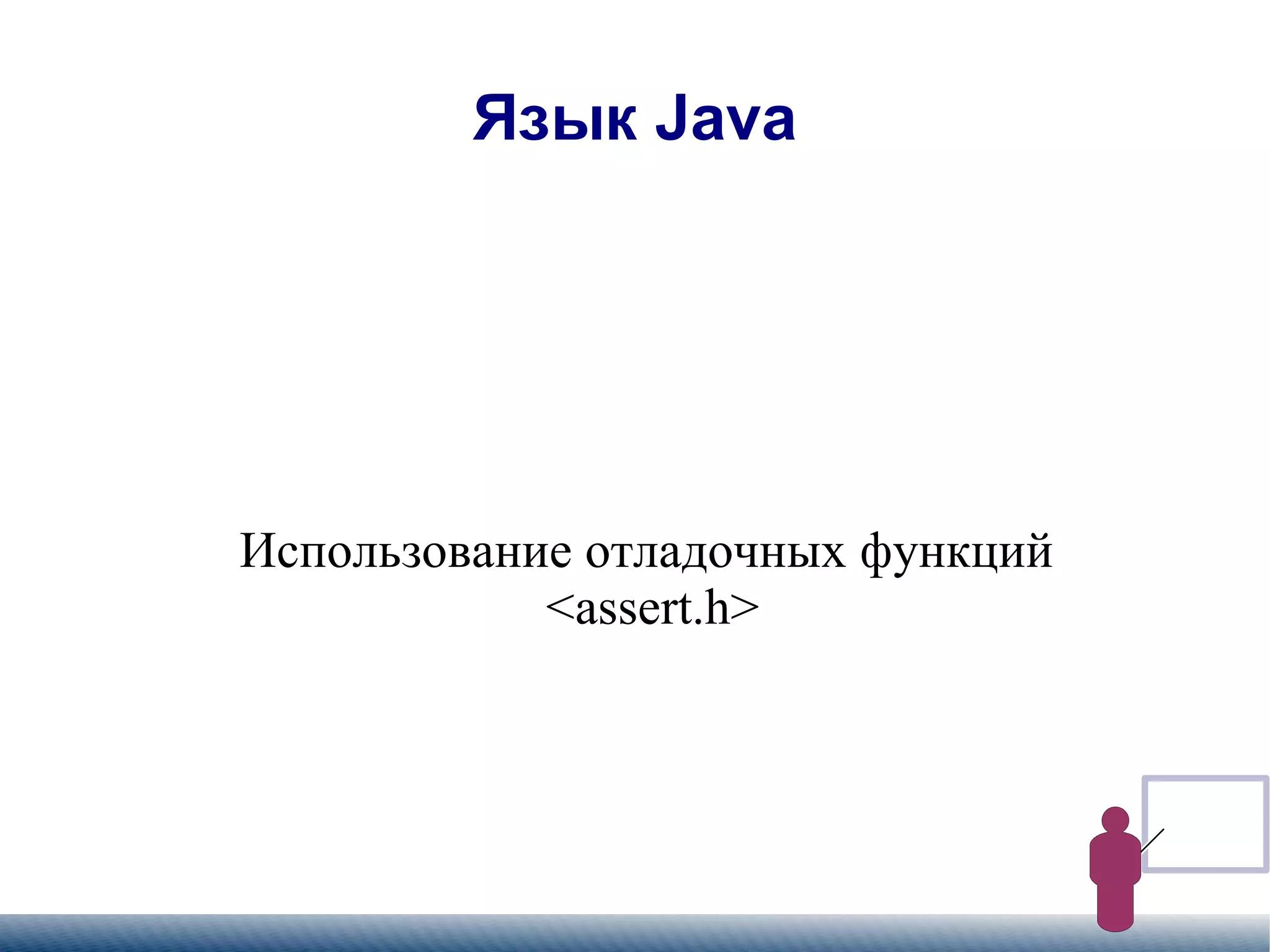 Документ объясняет использование заголовочного файла assert.h в языке Java для отладки. Он включает примеры использования макроса assert для проверки значений и обработки ошибок. Также упоминается режим ndebug и его влияние на функциональность assert.