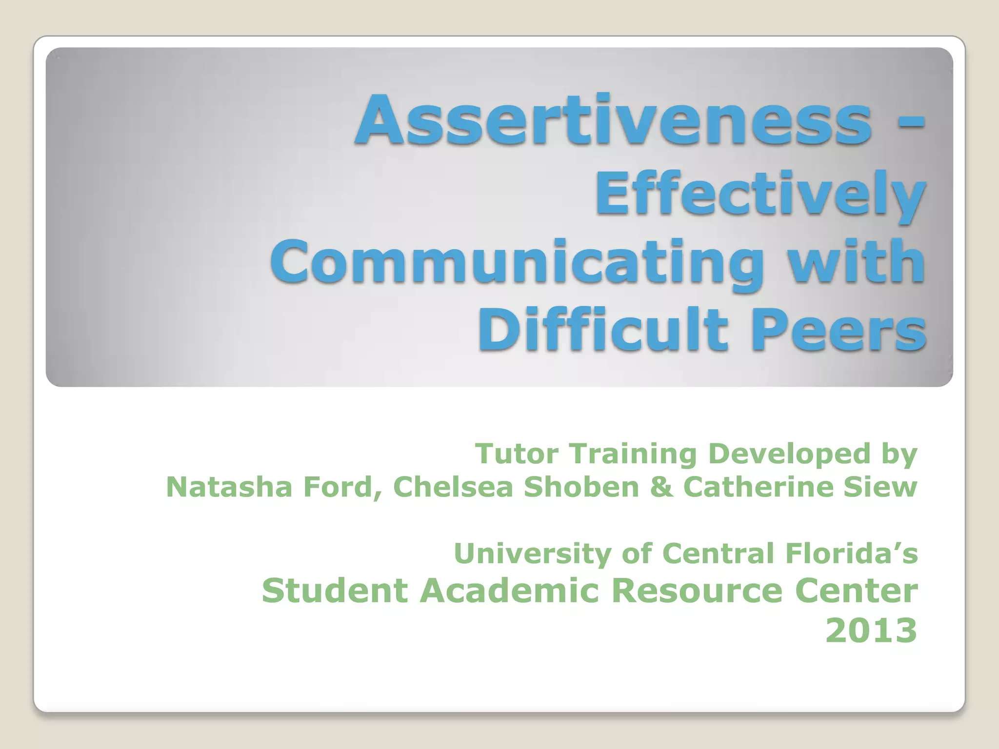 The document discusses different communication styles - passive, aggressive, and assertive - and how they apply to tutoring situations. Passive communication does not express honest thoughts and feelings, while aggressive communication violates others' rights. The document advocates for assertive communication as a middle ground, where one can be open and honest without disrespecting others.