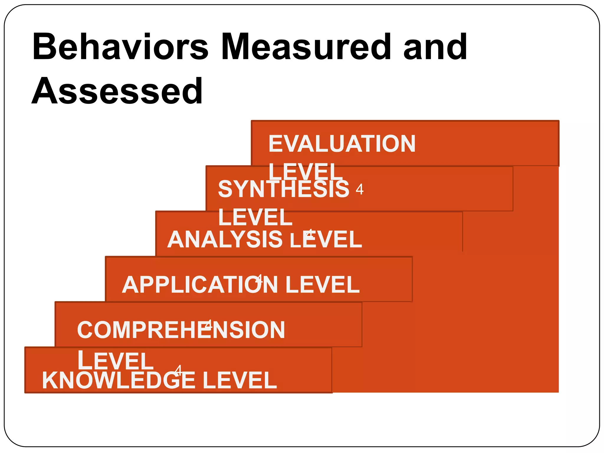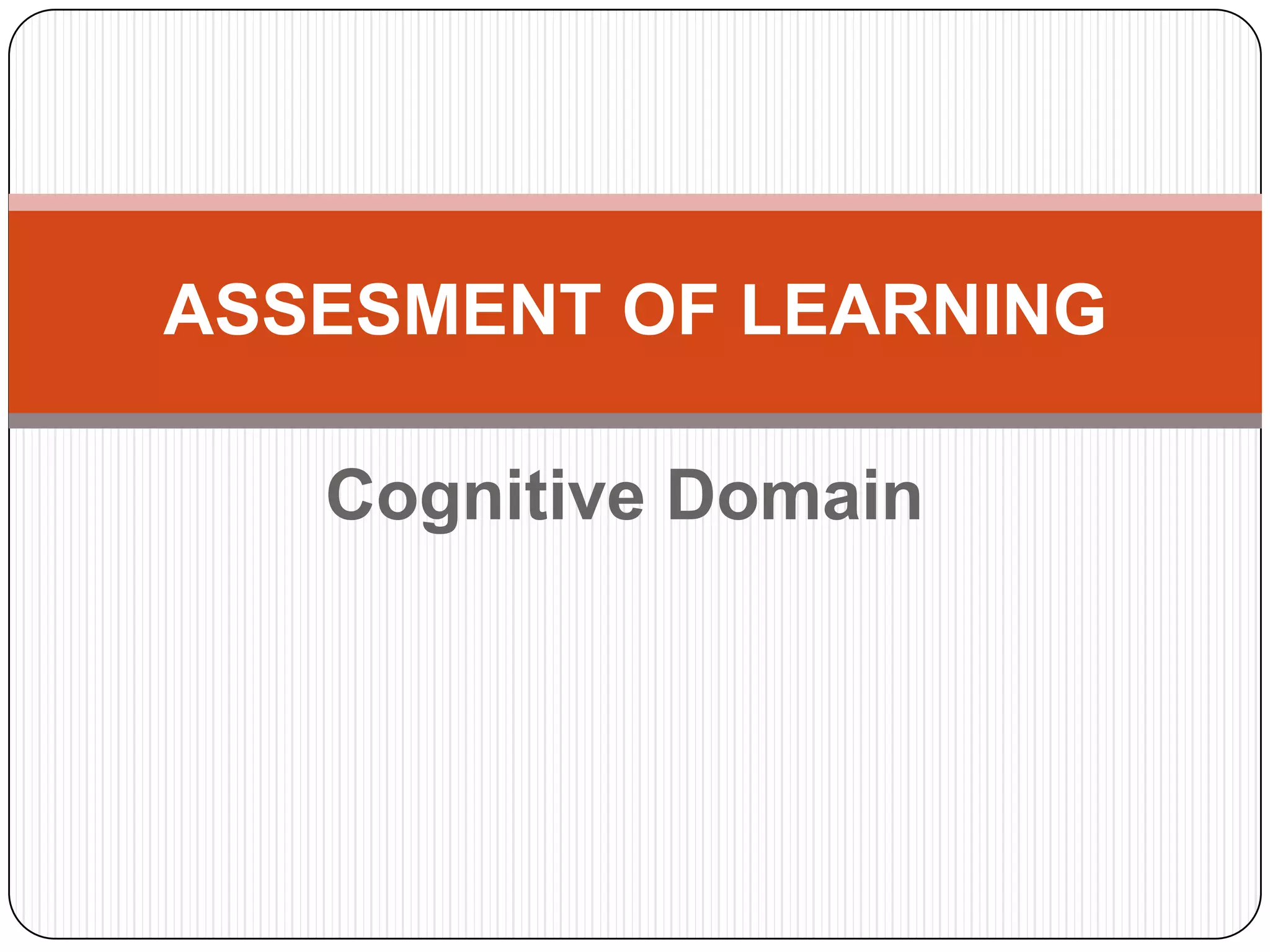 This document discusses assessing cognitive learning in 6 levels: knowledge, comprehension, application, analysis, synthesis, and evaluation. It describes behaviors measured at each level and provides examples of objective and essay test questions that could assess learning at each level. Objective tests include supply, selection, and matching questions. Essay tests are also appropriate to assess cognitive learning when outcomes cannot be fully measured by objective tests alone. Factors to consider when choosing a test type include the learning purpose, time available, and allowing students to demonstrate targeted competencies.