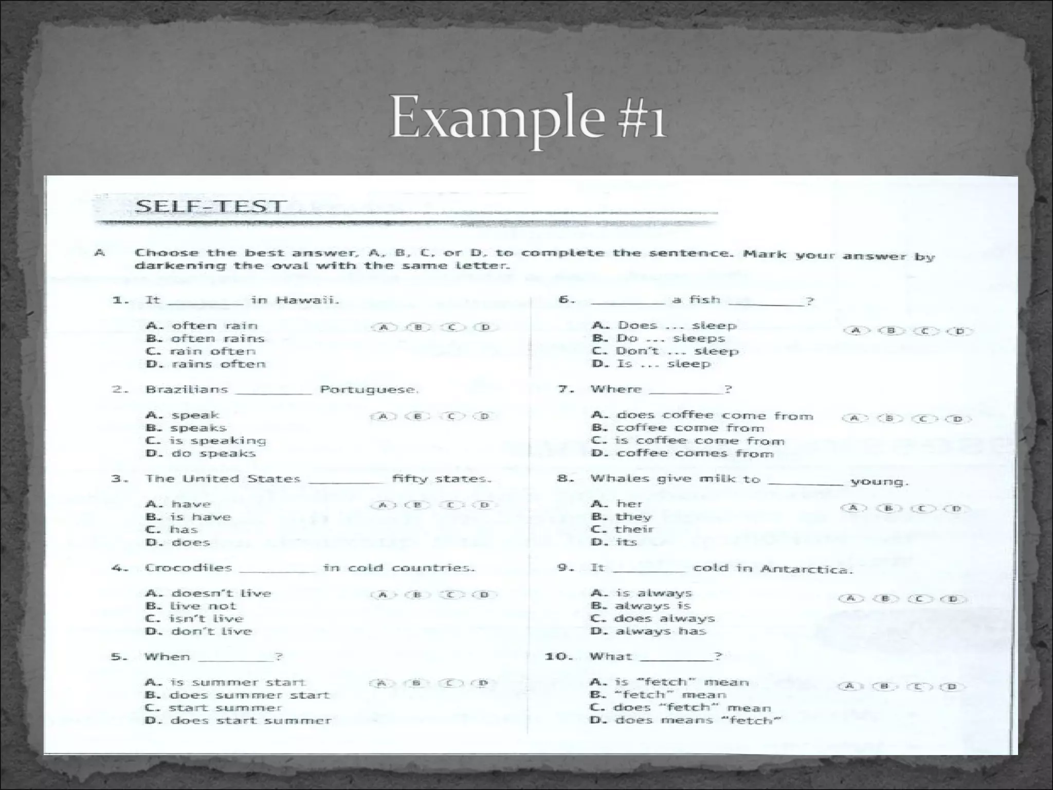 Assessment is a fundamental aspect of teaching that can help teachers determine students' language proficiency and identify strengths and weaknesses. Teachers need ongoing assessment to understand how well students are comprehending material. Assessment relates to individual learning while evaluation refers to assessing an entire course or program. Reasons to assess include diagnosing student abilities, informing future lessons, providing feedback, and assigning grades. Formative assessment occurs during teaching to improve outcomes while summative assessment happens at the end to measure achievement. Common forms of assessment include classroom tests, elicitation, observation, journals, portfolios, error analysis, and questionnaires. Grammar tests can be discrete, assessing individual items, or integrative, evaluating a range of skills.