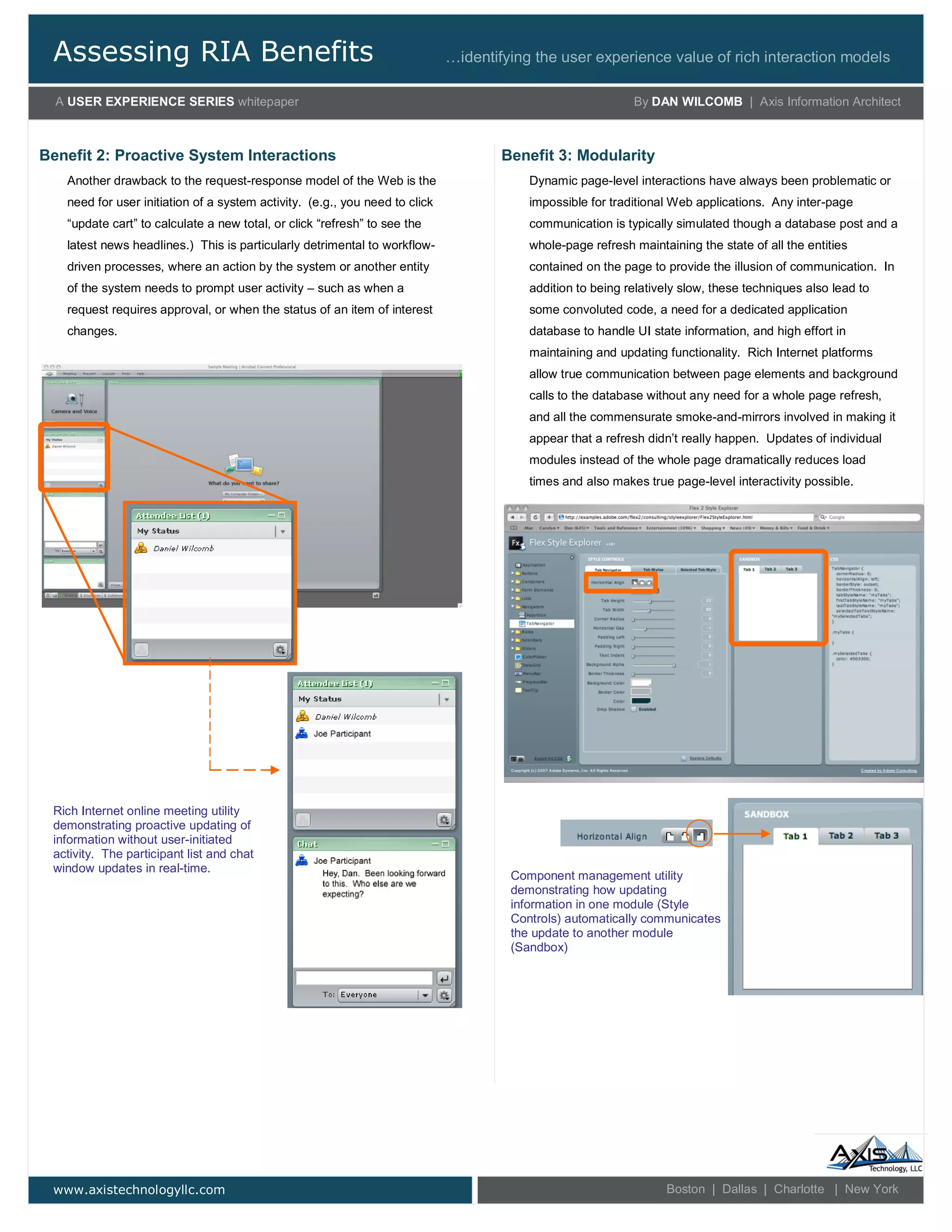2) Some key benefits of RIA include providing instant feedback to users as they interact, allowing the system to proactively update information for the user, and developing applications as modular components that can independently and dynamically communicate with each other.