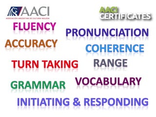 This document provides guidance for oral exam preparation. It discusses key aspects of student performance to focus on, including task achievement, fluency, and linguistic resources. Descriptors for different performance levels - fail, pass, and above average - are provided. Sample exam tasks like interviews, presentations, negotiations and discussions are shown. Suggestions are given for how to help students practice, including showing task types, scales, doing mock exams, and making practice fun and engaging. Strategies to teach students how to handle challenges in exams are also listed.