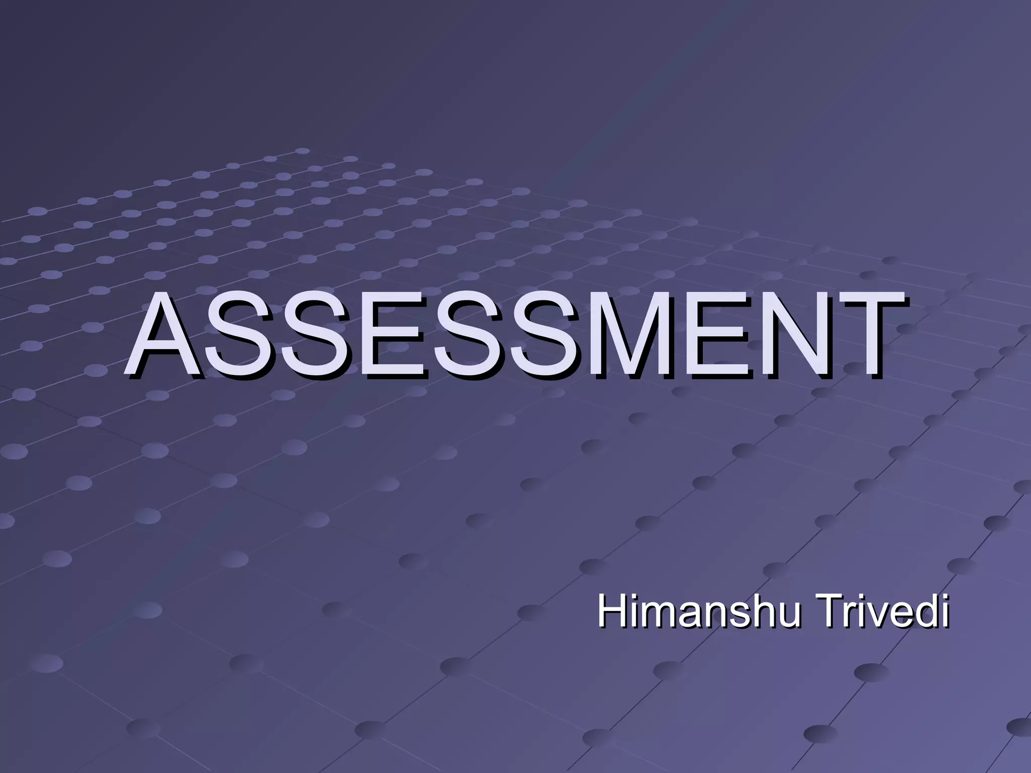 Nursing assessment involves the systematic collection of a patient's physiological, psychological, sociological, and spiritual data. It is the first phase of the nursing process. There are several types of nursing assessments, including initial, focused, emergency, and time-lapsed assessments. The goals of assessment are to gather baseline data, identify health problems, determine the patient's strengths and risks, and provide data to inform diagnosis. Key steps in assessment involve collecting, validating, organizing, and communicating patient information.