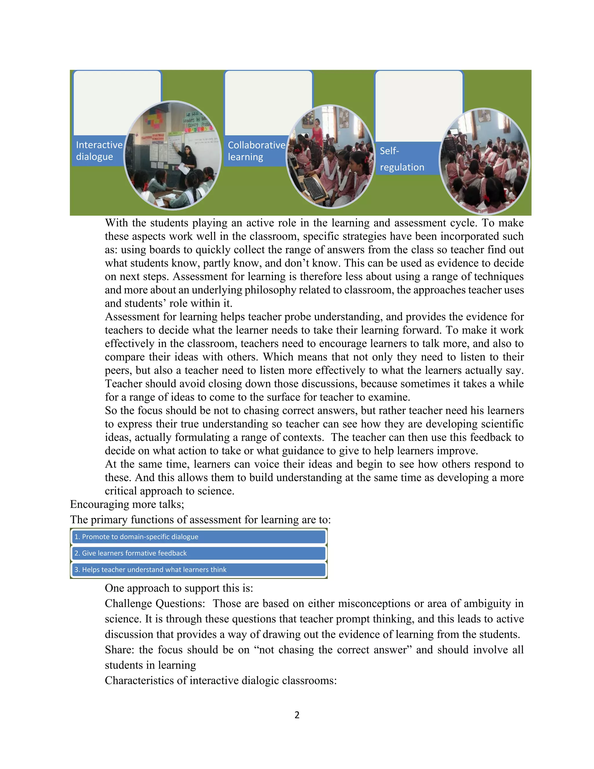 - Assessment for learning allows teachers to understand students' thinking and identify misconceptions in order to adapt teaching accordingly.