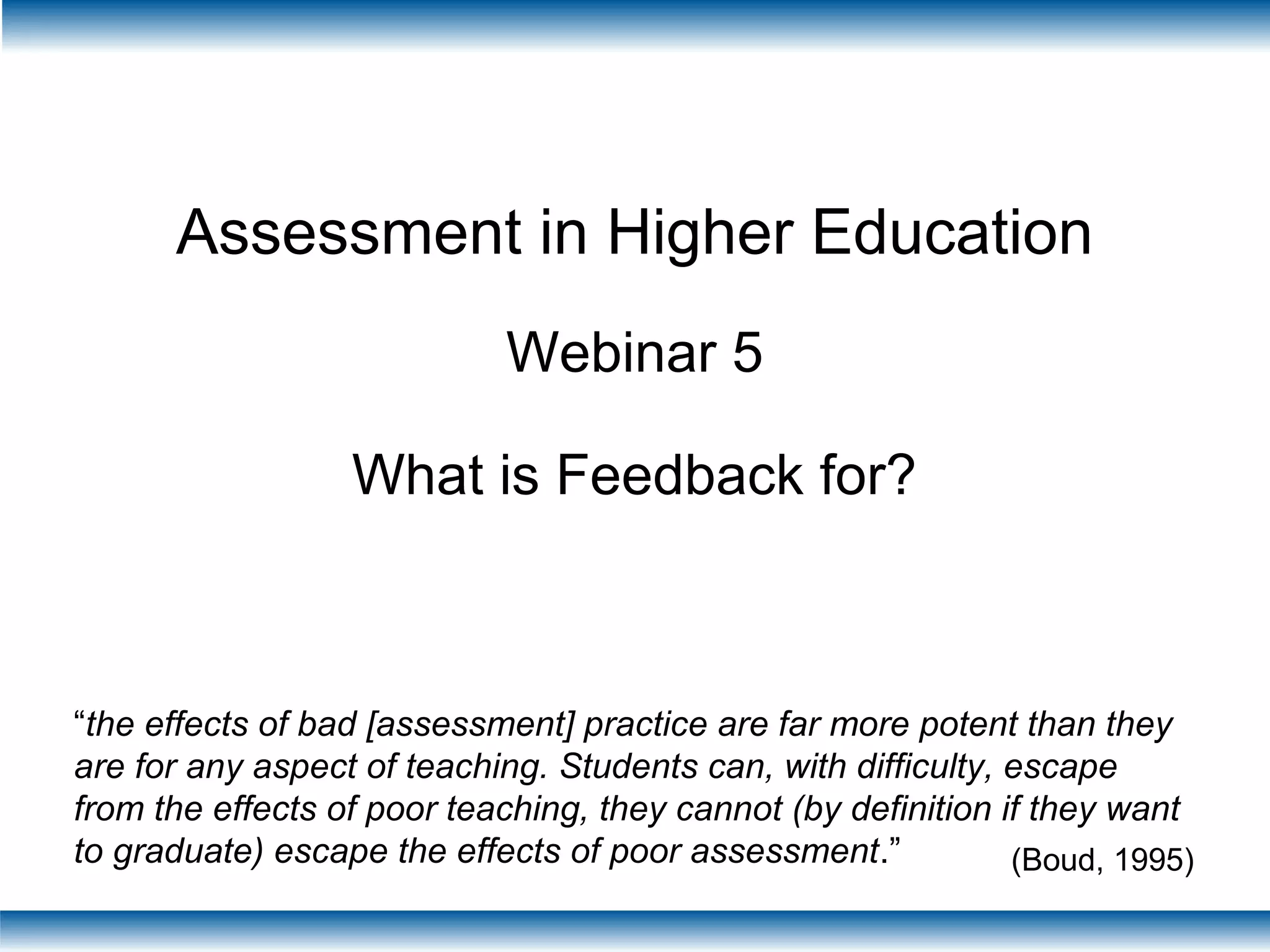 This document discusses feedback in assessment in higher education. It defines formative assessment as feedback meant to help student development without counting towards the final grade, while summative assessment measures student learning outcomes at the end of a period of study. Research cited finds feedback is most effective when it identifies errors, provides corrections, and explains reasons. However, students often fail to act on feedback or collect it. The document proposes involving students more directly in the assessment process to improve feedback effectiveness.