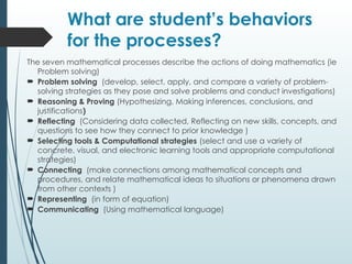 The seven mathematical processes describe the actions of doing mathematics (ie