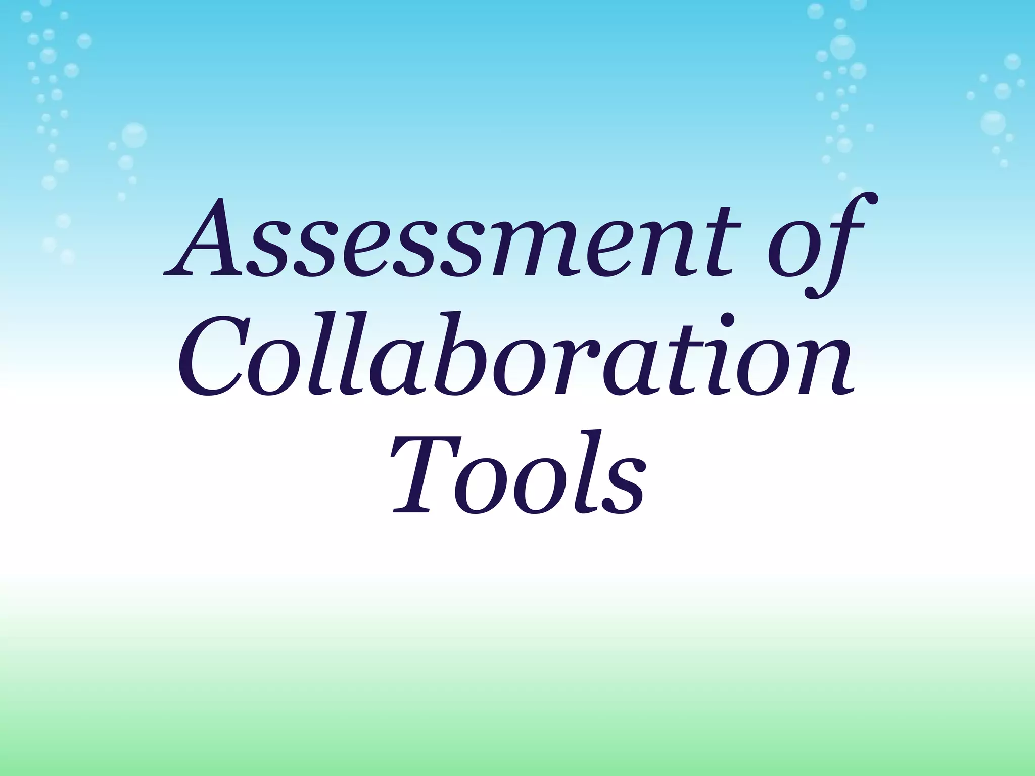 The document discusses and compares three collaboration tools: Freenet, ooVoo, and Google Docs. Freenet allows for peer-to-peer information sharing anonymously but has slow transfers and charges for breaking rules. OoVoo enables free video chatting through a web browser but limits group calls without payment. Google Docs permits free online document creation and sharing from any computer but lacks some features of other programs and access relies on server availability. Overall, the document argues that web-based collaboration tools are increasingly important and useful in both education and business.