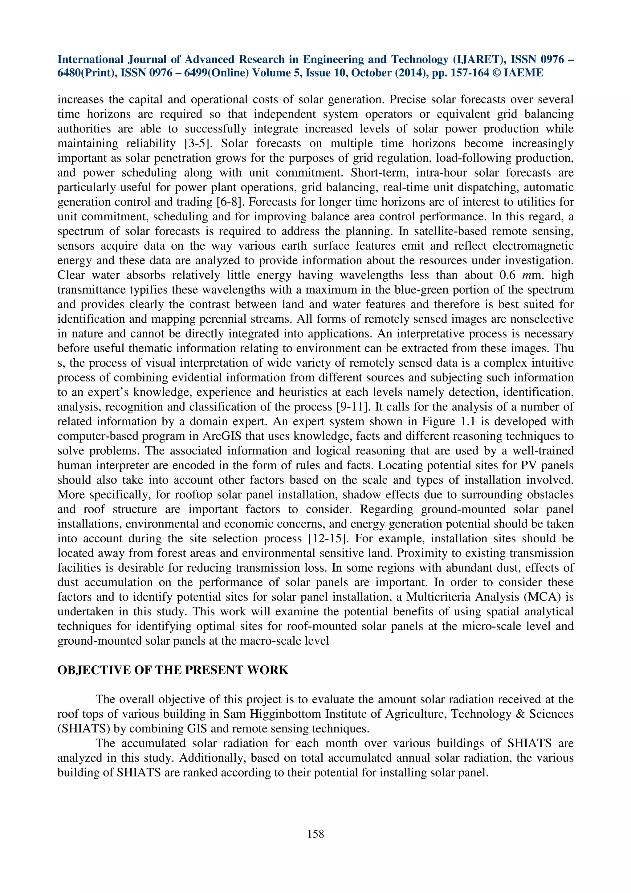 The study assesses the potential for installing solar panels on rooftops at Sam Higginbottom Institute of Agriculture, Technology & Sciences (SHIATS) in Allahabad, India, by generating solar radiation maps using GIS and remote sensing techniques. Buildings were evaluated and ranked based on the amount of solar radiation they received, revealing that the Jacob School of Biotechnology & Bioengineering received the most solar radiation annually, while the School of Film and Mass Communication received the least. The research emphasizes the importance of spatial analysis for optimizing solar panel installation locations to promote sustainable energy use.