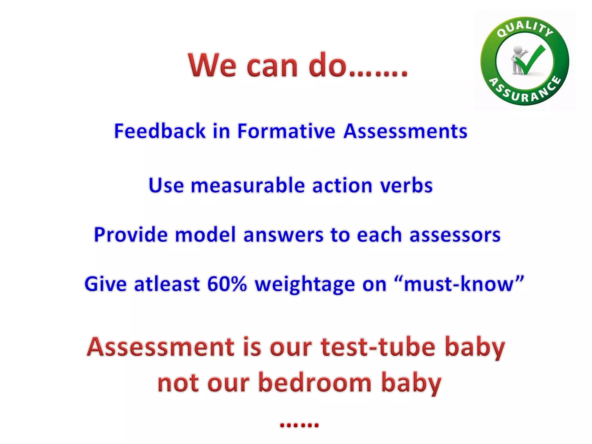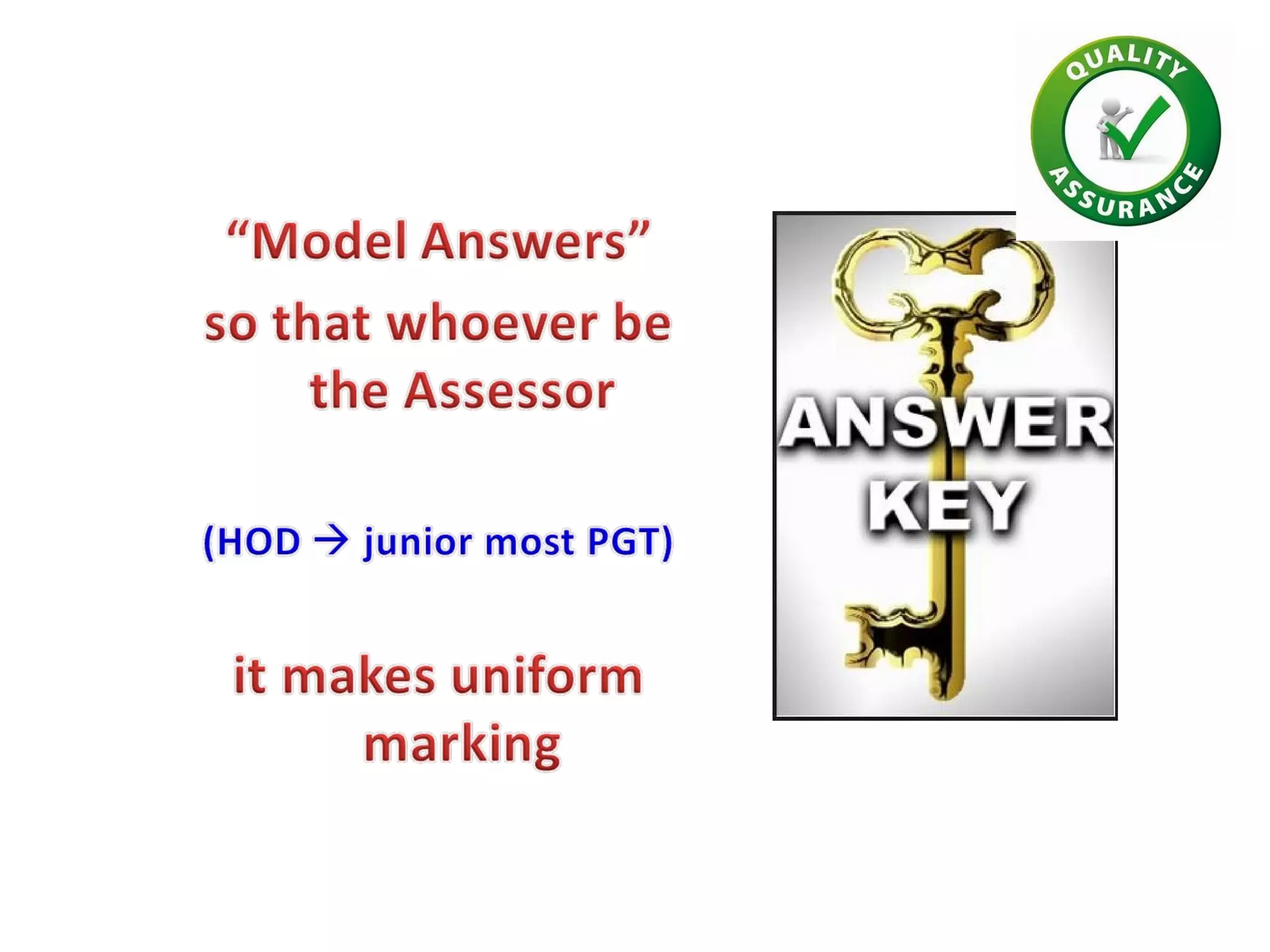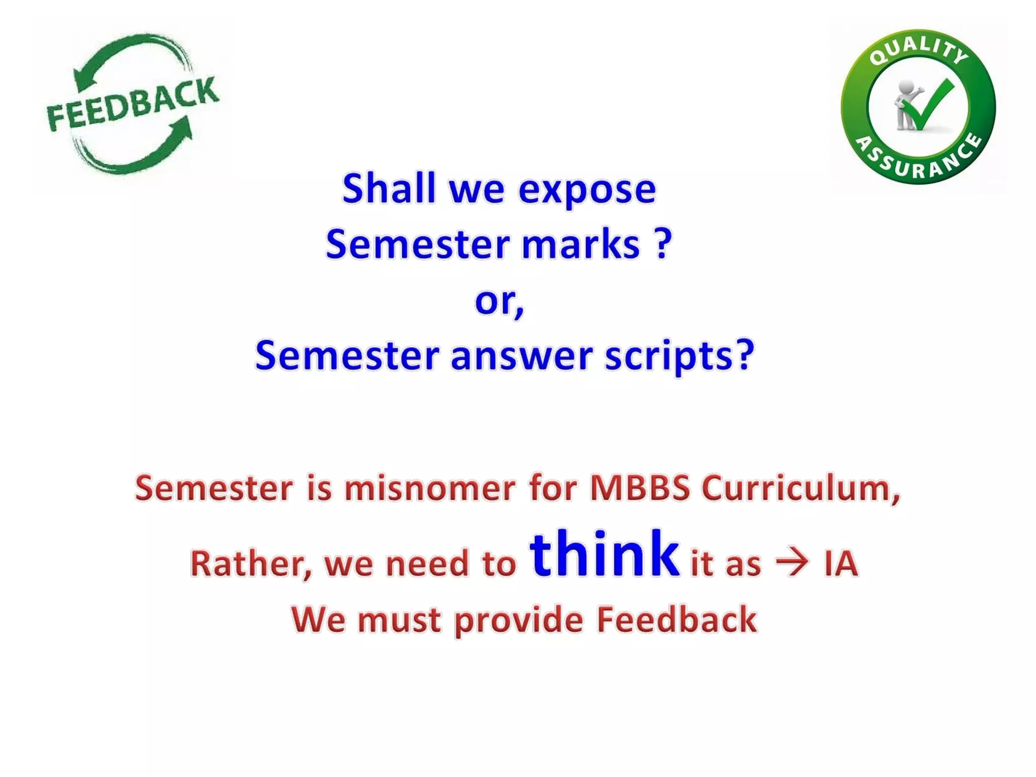 This document discusses assessment methods in medical education. It begins by explaining that medical examinations typically involve internal and external examiners. It then discusses different approaches to evaluating theory versus practical exams. The rest of the document focuses on question types for assessments, including essays, modified essay questions (MEQ), short-answer questions (SAQ), and structured assessment methods like objective structured clinical examinations (OSCE) and structured viva-voce exams. It emphasizes the importance of questions being clear, short, precise, and of increasing difficulty. The overall document provides an overview of different assessment strategies and emphasizes standardization and quality assurance in medical education evaluations.