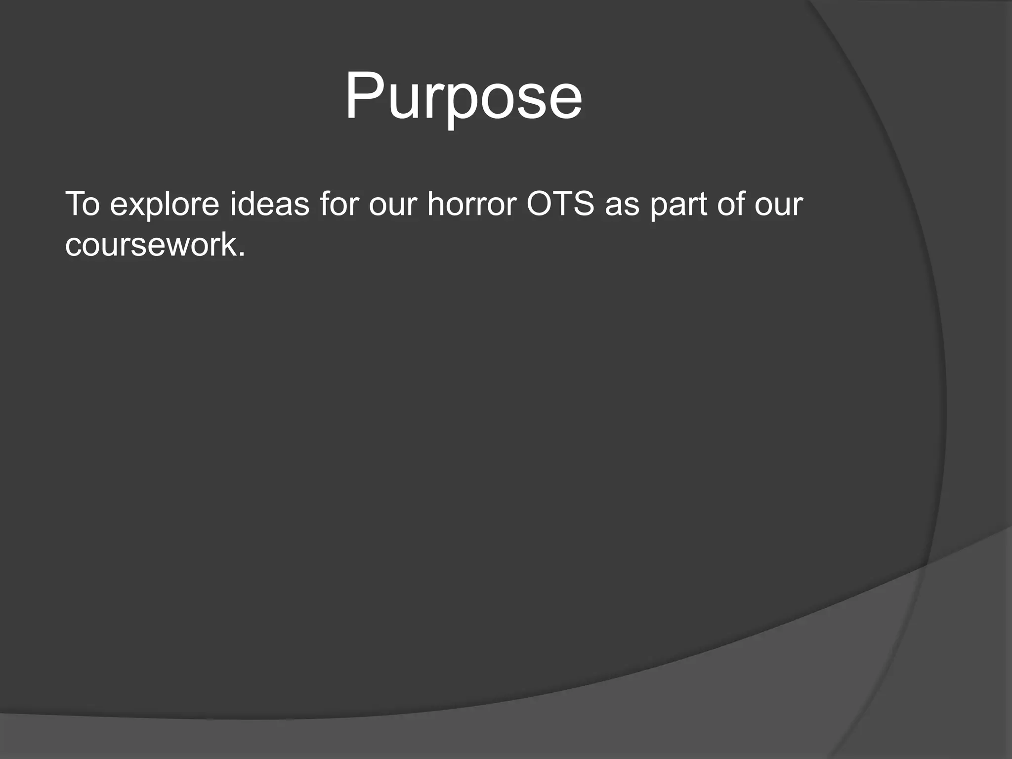 The document outlines a plan for a student group's horror open topic short film (OTS) assignment. The group will create a zombie film told in a nonlinear narrative with symbolism showing the spread of the virus. Their main idea is to film a series of news reports jumping across time to show the outbreak and transformation of people into zombies. They will also show the virus spreading and infecting people from different perspectives using handheld camerawork.