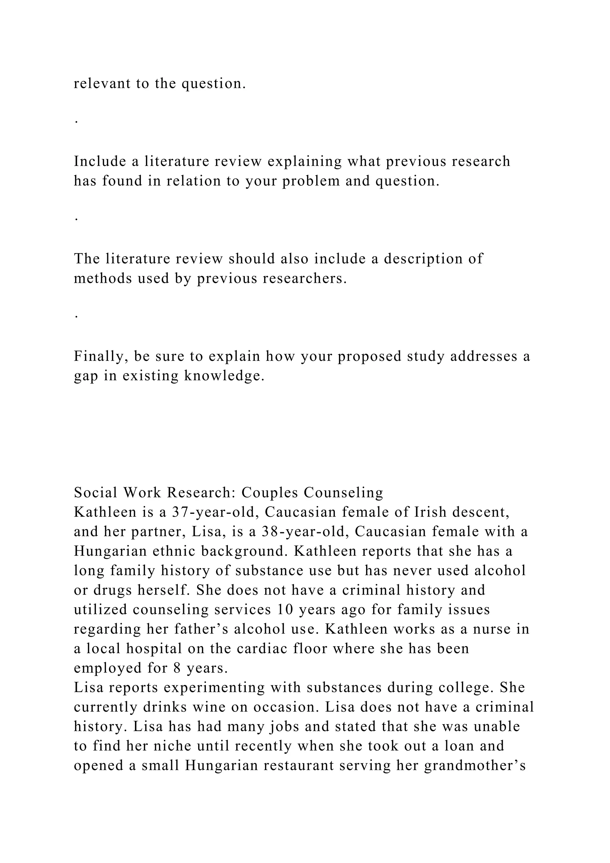 This document outlines two assignments related to social work research proposals and agency presentations. The first assignment involves creating a 5-page research proposal based on selected case studies, requiring a research problem, question, literature review, and evaluation of existing gaps in knowledge. The second assignment entails preparing an 8-10 slide presentation about a specific agency, focusing on its mission, funding sources, and organizational structure, specifically for military mental health services.