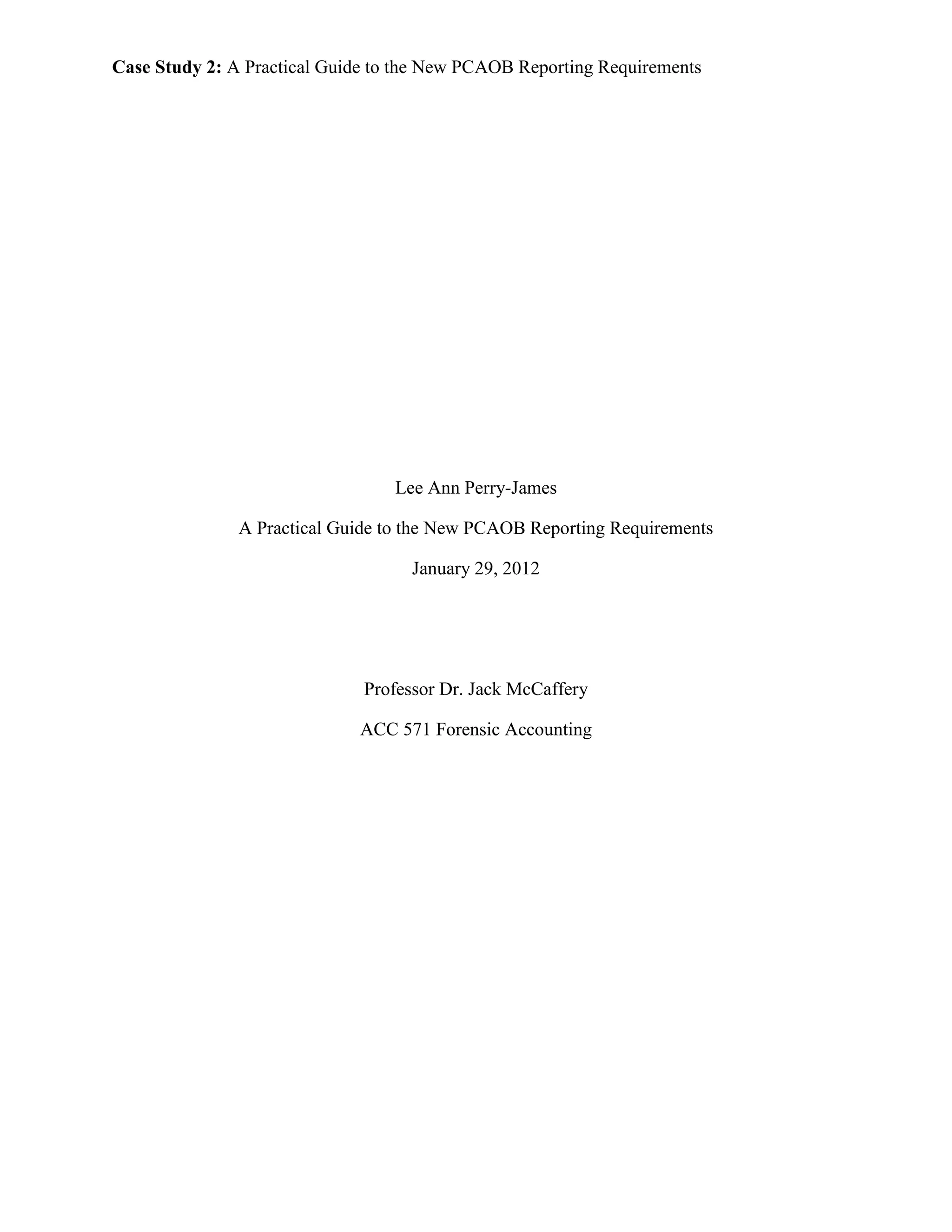 The document provides an overview of the PCAOB reporting requirements for auditing firms. It discusses how the PCAOB aims to reduce financial fraud by requiring firms to submit annual and current reports on their audit practices and personnel. These reports collect information on the firm to confirm their independence and integrity. The document also outlines auditor responsibilities to detect fraud during audits and alternatives to the PCAOB such as strengthening the SEC.