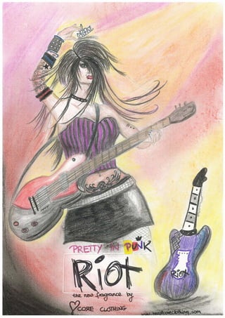 The document provides an analysis of two print and television advertisements for the fragrance 'Be Delicious' by DKNY. It compares how each ad is targeted towards different audiences across the two media platforms. It then describes an advertising campaign created by the student for a new fragrance called 'RIOT' from Core Clothing, including a magazine advertisement and storyboard for a television commercial.