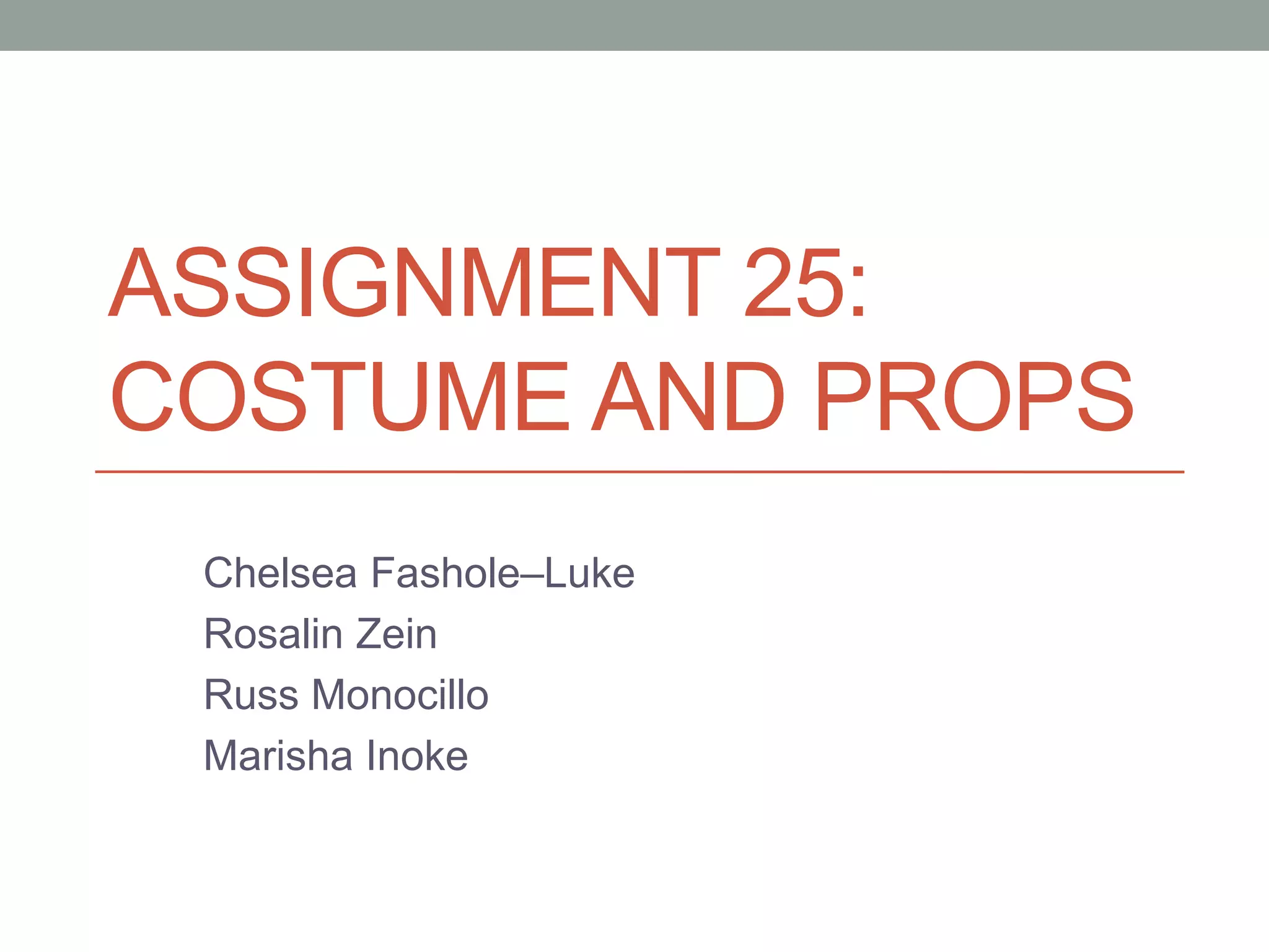 This document provides details for a costume and props assignment for a presenter named Russ Monocillo. It includes proposed costumes before and after shots, and lists ideas and sources for props including an iPad, iPhone, paper clipboards, and computer. The group will use props they already have, buy inexpensive options online, or borrow from the school library. The goal is to have props and a professional but casual costume that are not distracting for interviews.