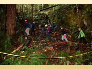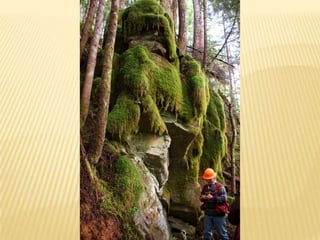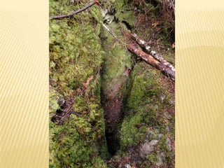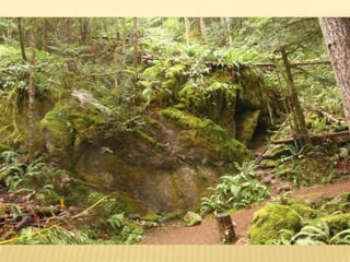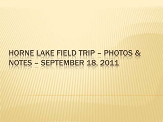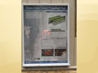 The document summarizes observations from 8 sites visited during a field trip to Horne Lake. At Site 1, a limestone bluff with solution holes was observed. Site 2 showed evidence of karst in the form of a dry gully. Site 3 had a limestone outcrop with clearly defined dipping beds. Site 4 contained a grike solutional hole near a limestone outcrop. Site 5 included three sinkholes of various sizes, possibly formed from the coalescence of two sinkholes. Site 6 featured a dry channel acting as a swallet leading to a cave entrance. Site 7 had exposed epikarst and solutional features near Cougar Cave. Site 8 discussed potential plant and forest interpretations along